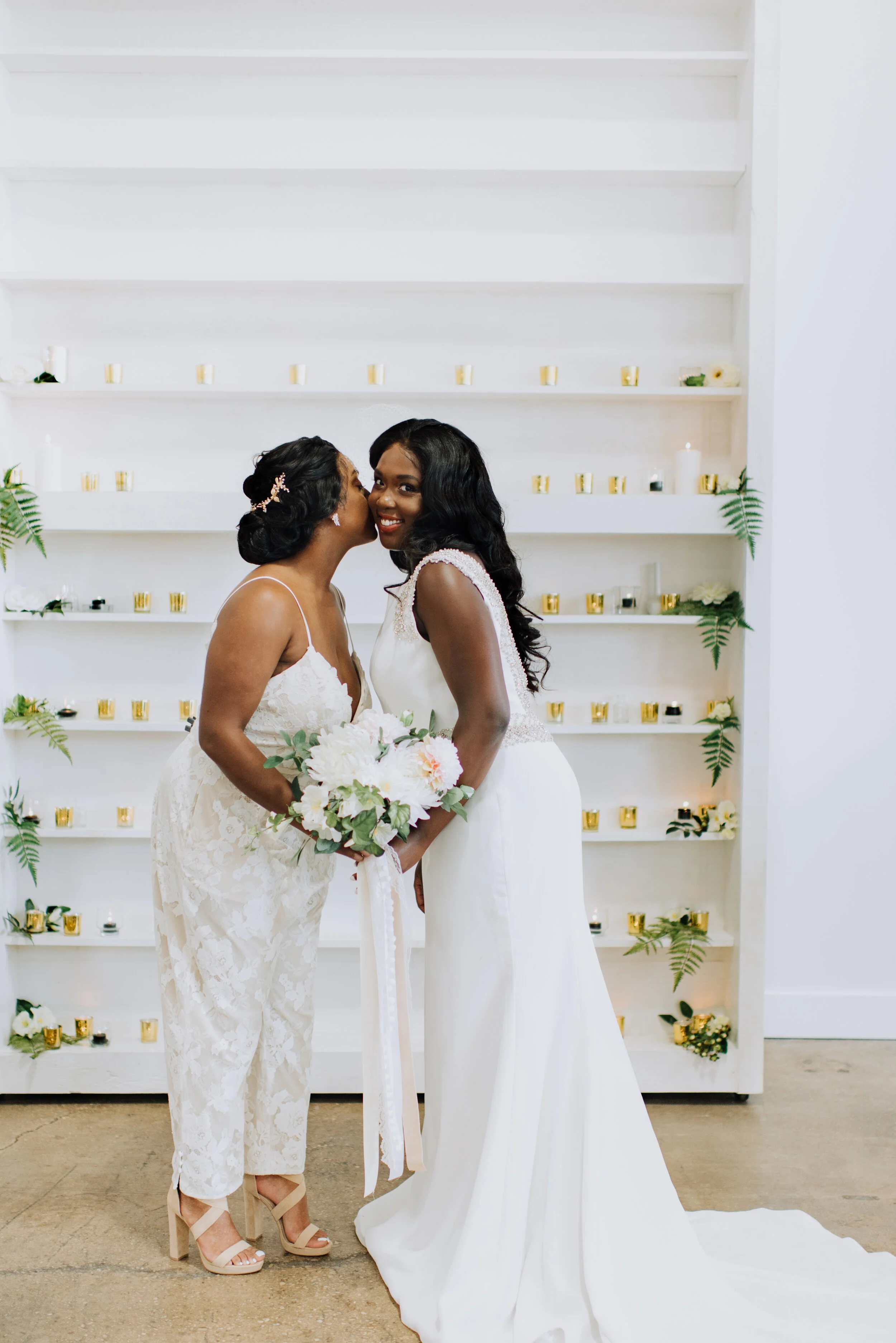 ( Dress by Grace & Ivory ; Jumpsuit BHDLN & Hayley Paige ; Venue Haven Street Ballroom ; Makeup Makeup By Jacs ; Flowers Rogue & Petal ; Photographer Photos By HFB)